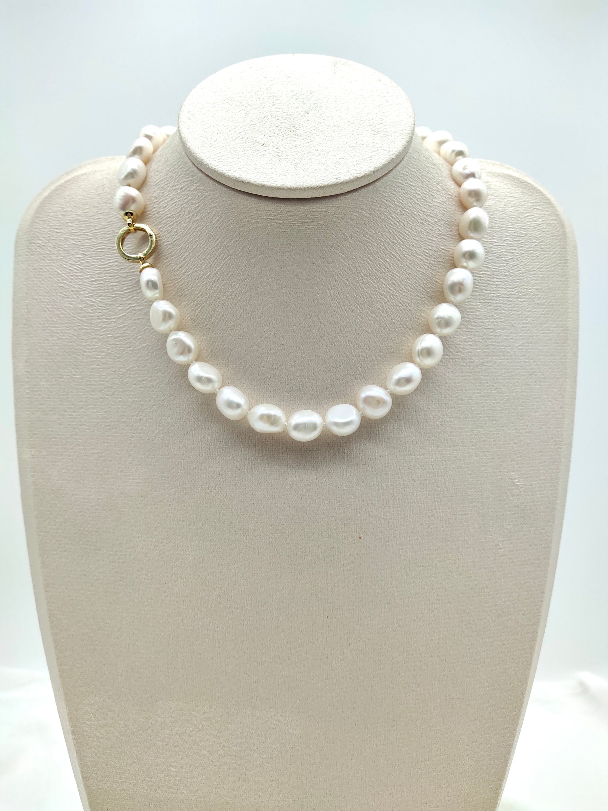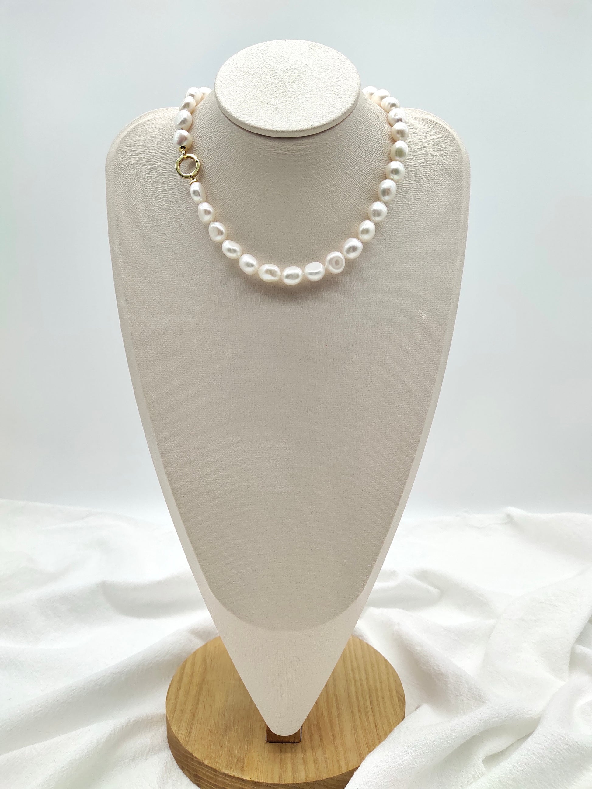 A beautiful new style in our necklace collection. Pearls will vary between each necklace as they are a natural product. The each pearl measures approximately 9.5mm -10mm.