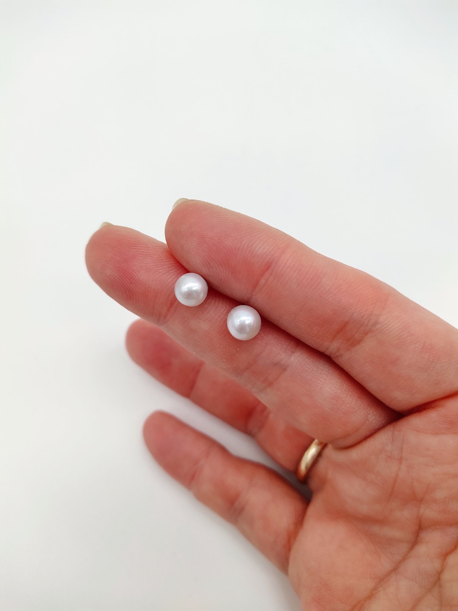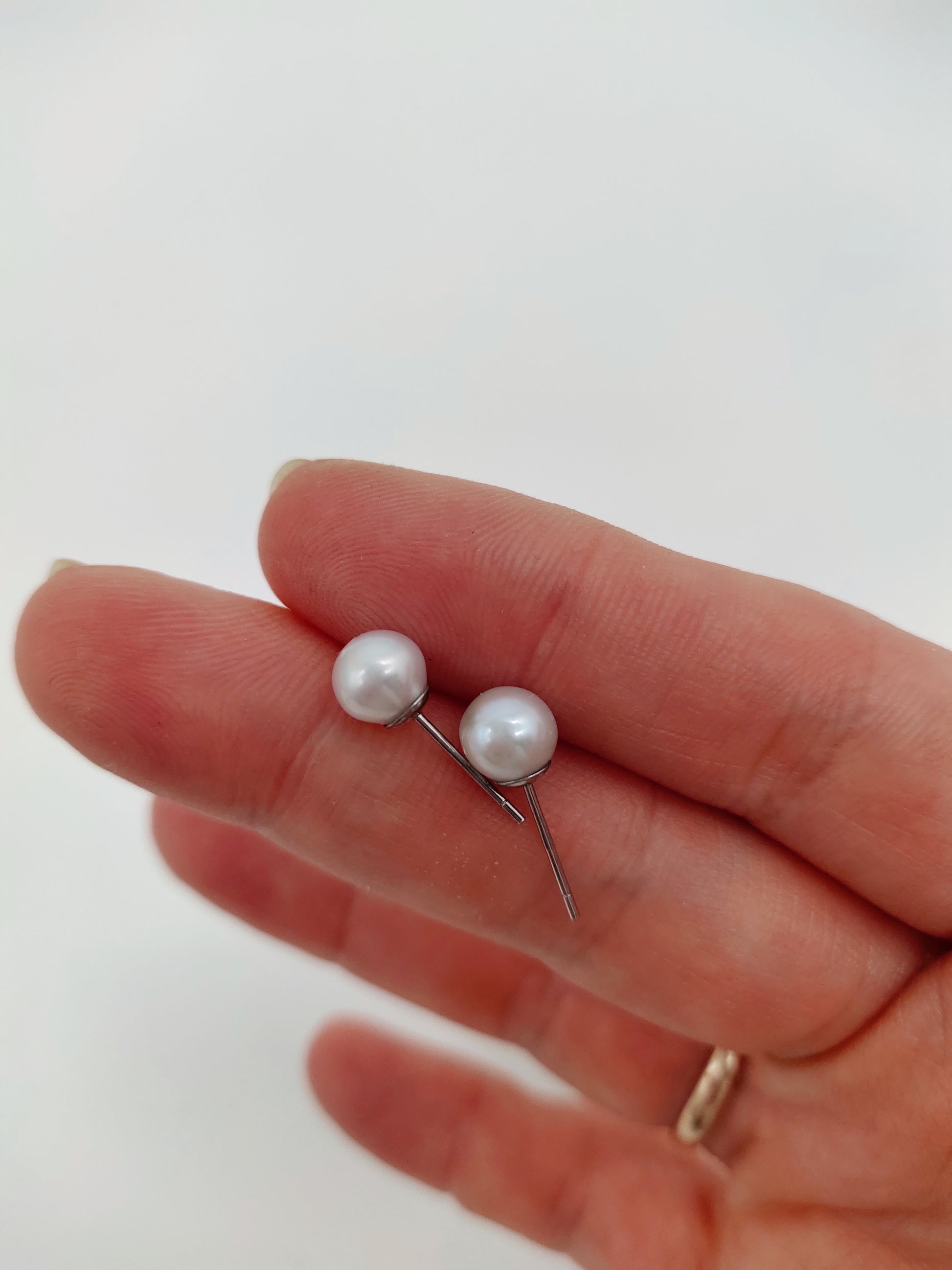 CLASSIC ROUND PEARL STUD EARRINGS arrives in a signature white jewellery box with a protective drawstring pouch, all presented in a ribbon-tied cardboard box - a perfect, ready-to-gift package.
