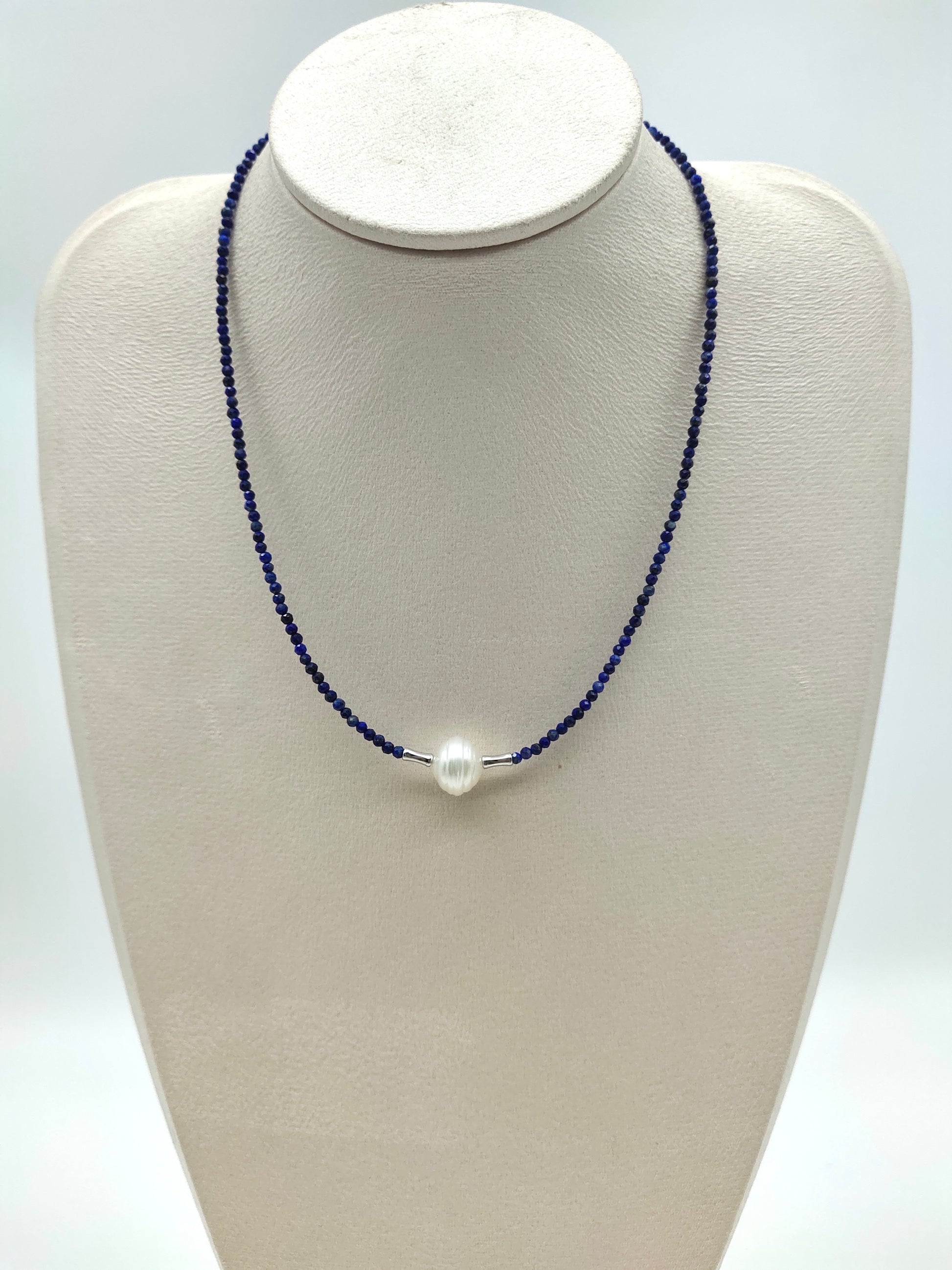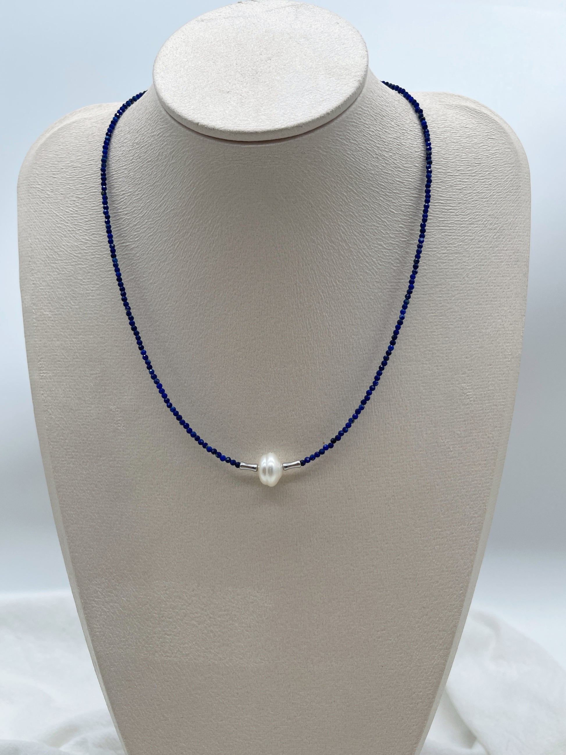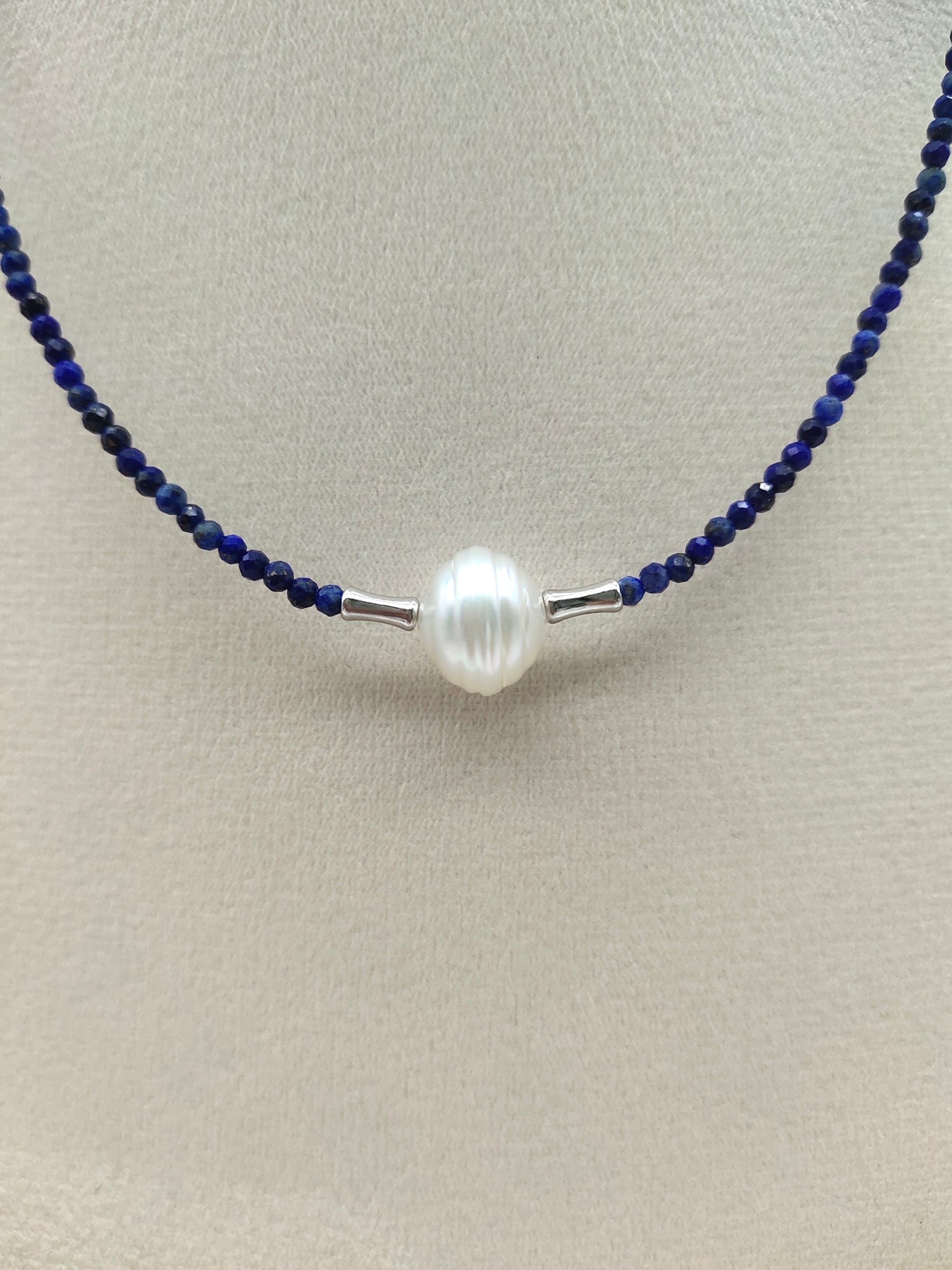 NATURAL LAPIS LAZULI NECKLACE WITH SOUTHSEA PEARL
