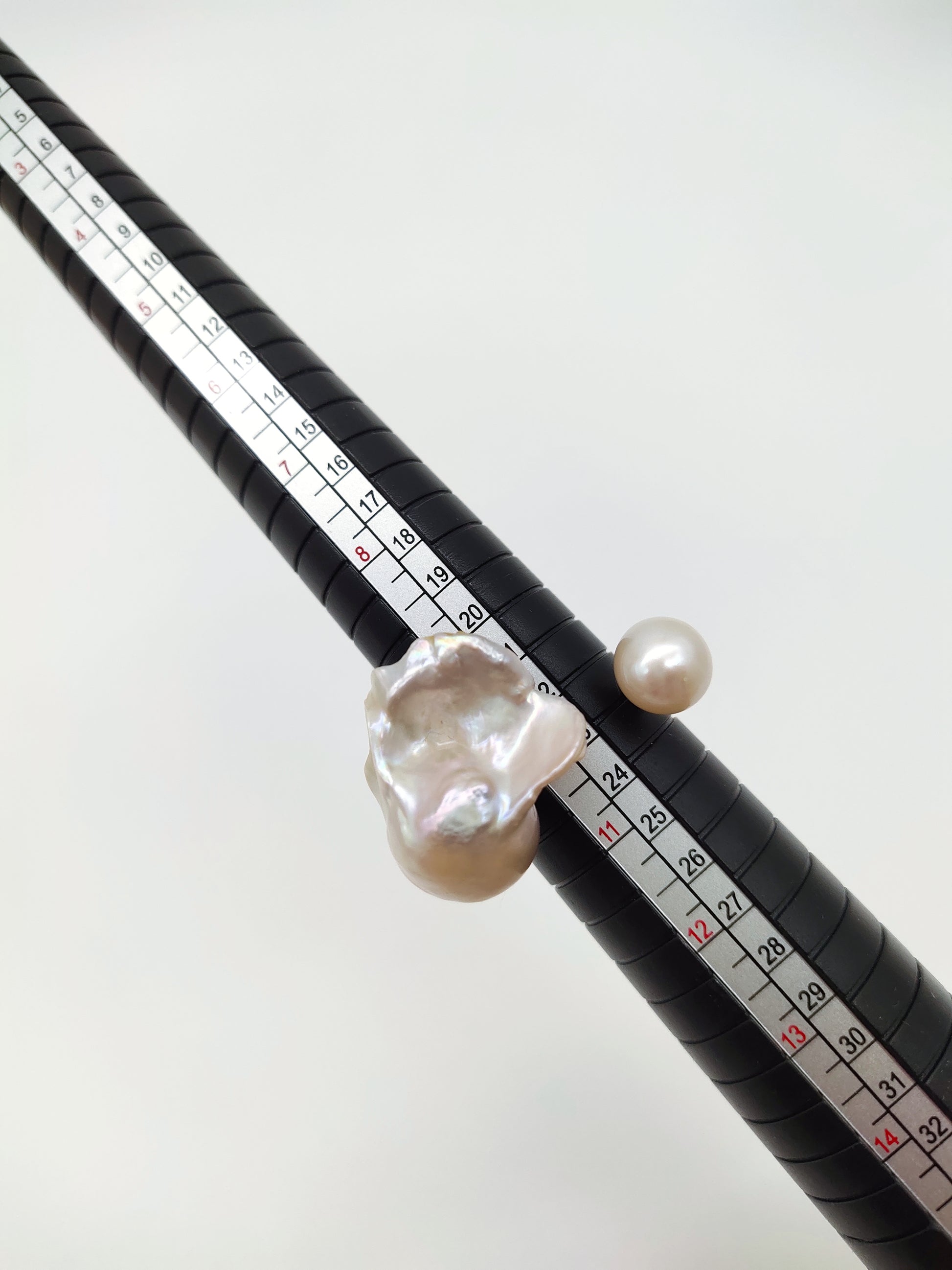 A beautiful new style in our ring collection. These unique baroque pearls display intense natural colours which are exquisite and varied under different light and angles.