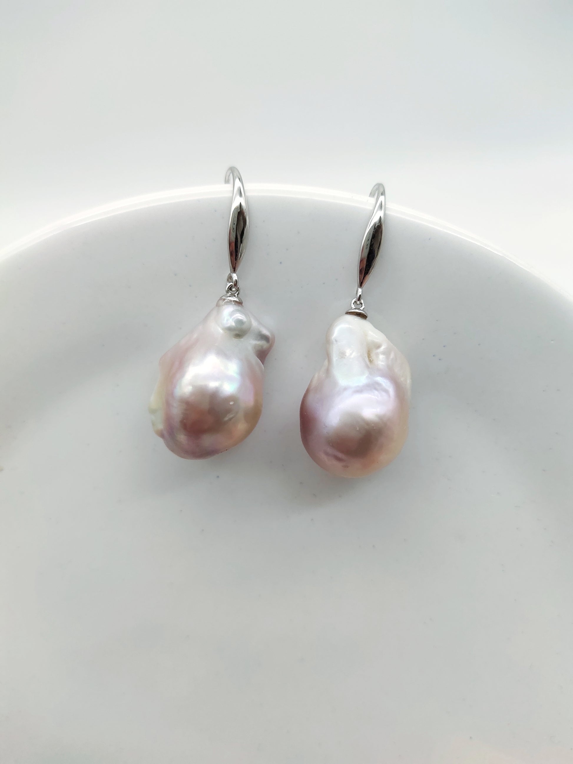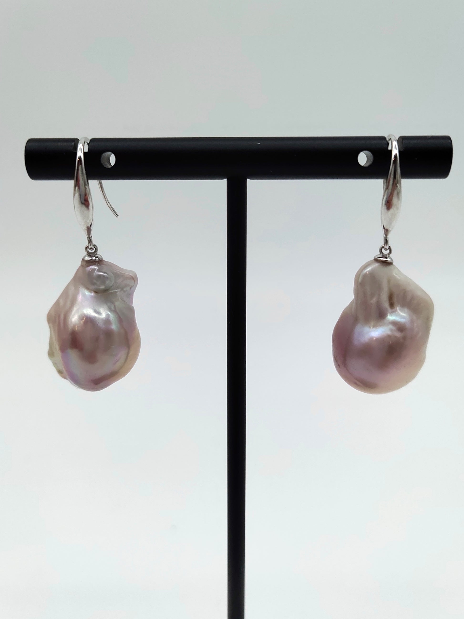 Crafted for impact, the generously sized pearls measure approximately 22mm x 15mm. They are carefully hand-set in lustrous rhodium-plated sterling silver (S925), a setting that enhances their organic beauty while offering a durable, hypoallergenic, and luxurious finish.