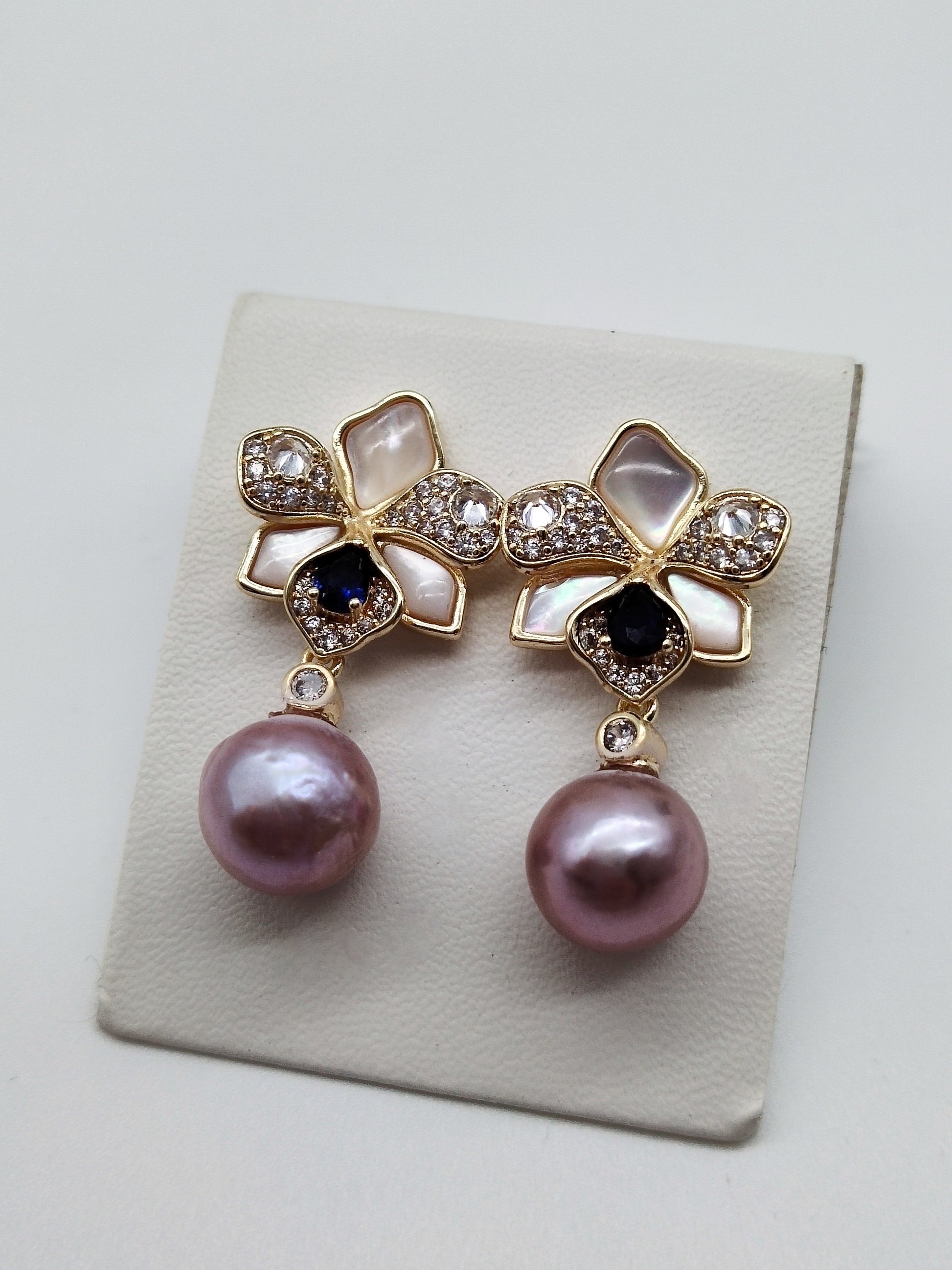 A beautiful new style in our earring collection. Pearls will vary between each necklace as they are a natural product. The each pearl measures approximately 9.5mm -10mm.