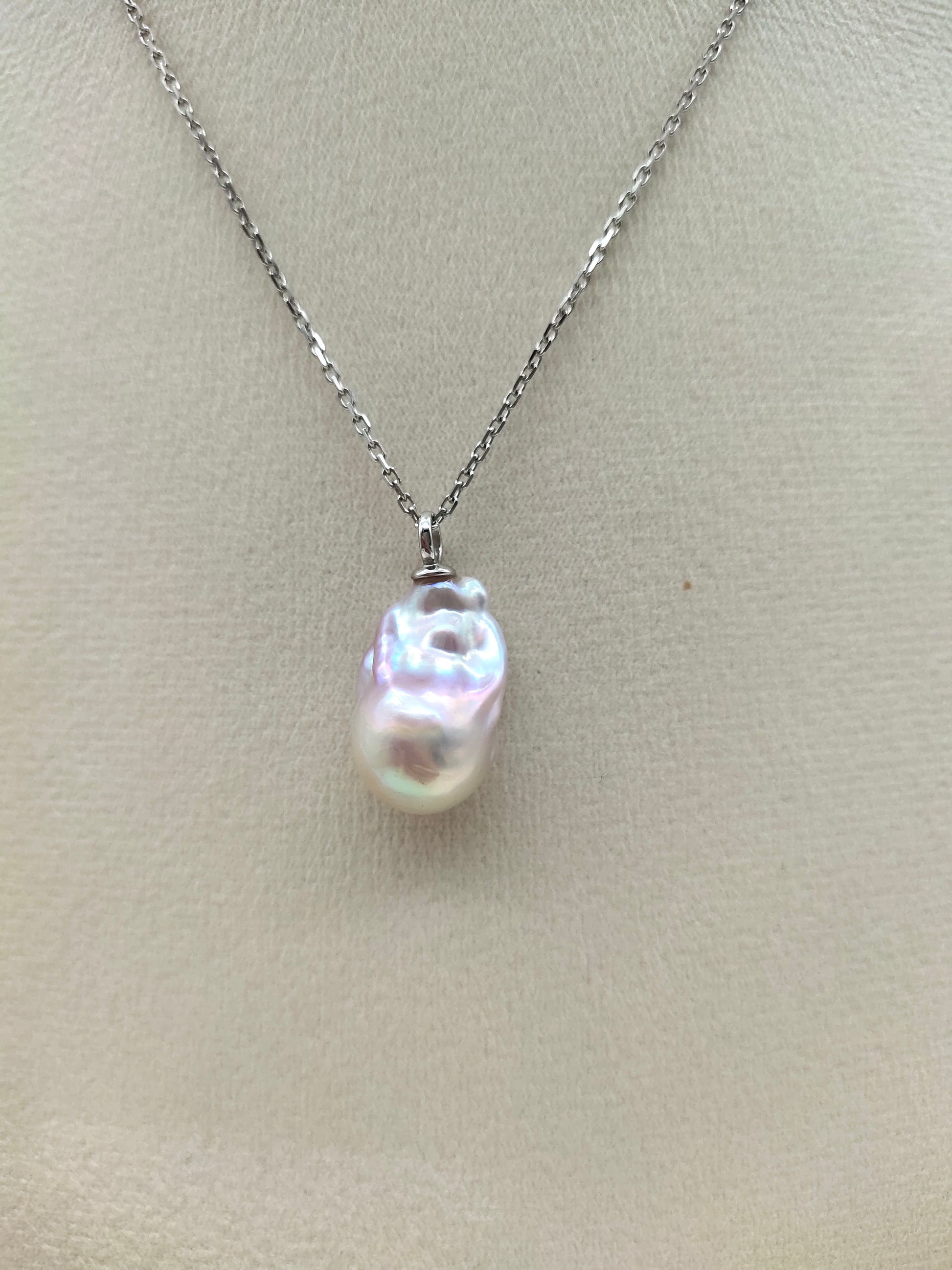 Discover a masterpiece of nature with our stunning Pink Baroque Pearl Pendant. This exquisite piece showcases the unique and irregular beauty of a baroque pearl, making it a truly one-of-a-kind addition to our collection.